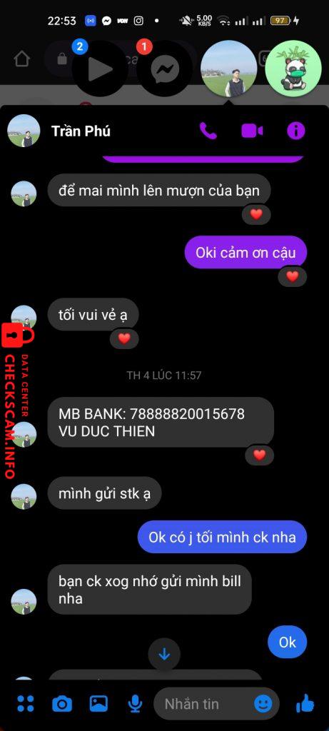 Scammer Alert: VU DUC THIEN Reported: November 16, 2024 Scammer Information Full Name: VU DUC THIEN Payment Gate: MB BANK Payment Account: 78888820015678 Category: Marketplace scams Source: Checkscam Evidence Files Report Description Hiện tại nó đã xóa fb Comments Your comment Add Comment No comments yet. Be the first to share your experience with this scammer.