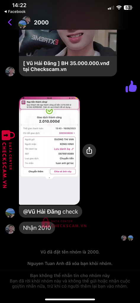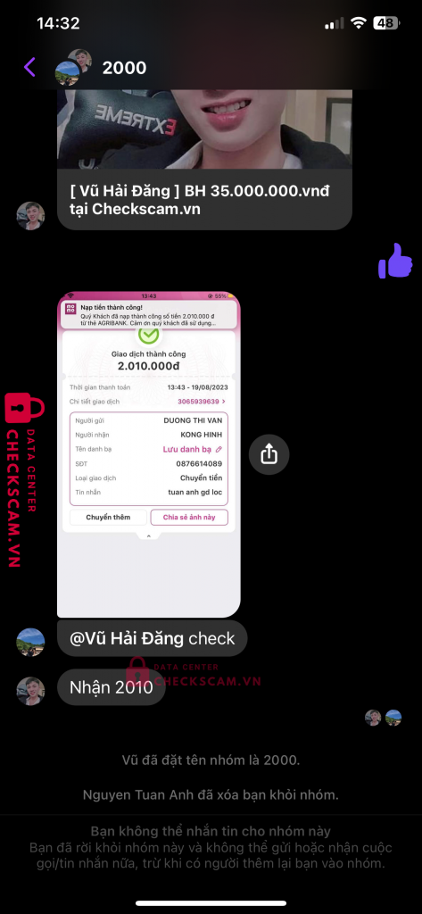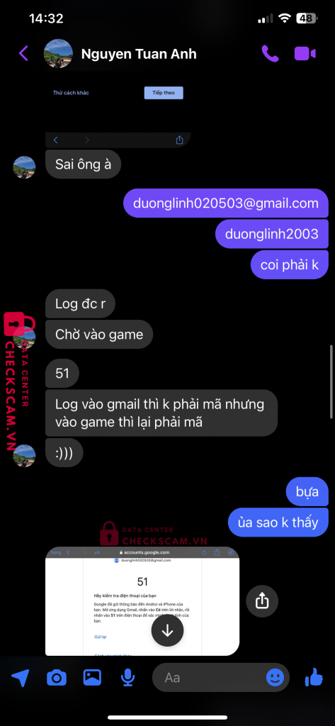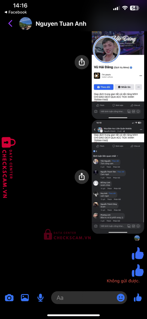 Scammer Alert: Vũ Hải Đăng Reported: November 16, 2024 Scammer Information Full Name: Vũ Hải Đăng Phone Number: 0931572155 Payment Gate: Vietcombank Payment Account: 1027835152 Category: Marketplace scams Source: Checkscam Evidence Files Report Description scam acc game standoff2 trị giá 2m / phối hợp với người mua để scam Comments Your comment Add Comment No comments yet. Be the first to share your experience with this scammer.