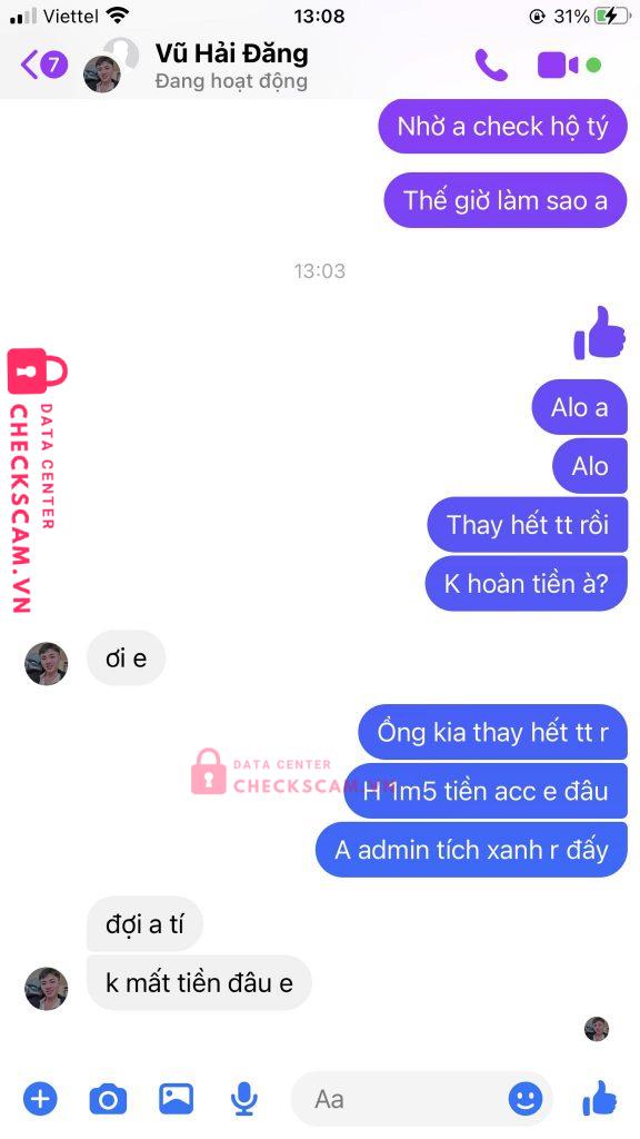 Scammer Alert: Vũ Hải Đăng Reported: November 16, 2024 Scammer Information Full Name: Vũ Hải Đăng Phone Number: 0876614089 Payment Gate: Vp Bank Payment Account: 0876614089 Category: Marketplace scams Source: Checkscam Evidence Files Report Description Thông đồng với 1 thằng khác đòi dame fb mình Comments Your comment Add Comment No comments yet. Be the first to share your experience with this scammer.