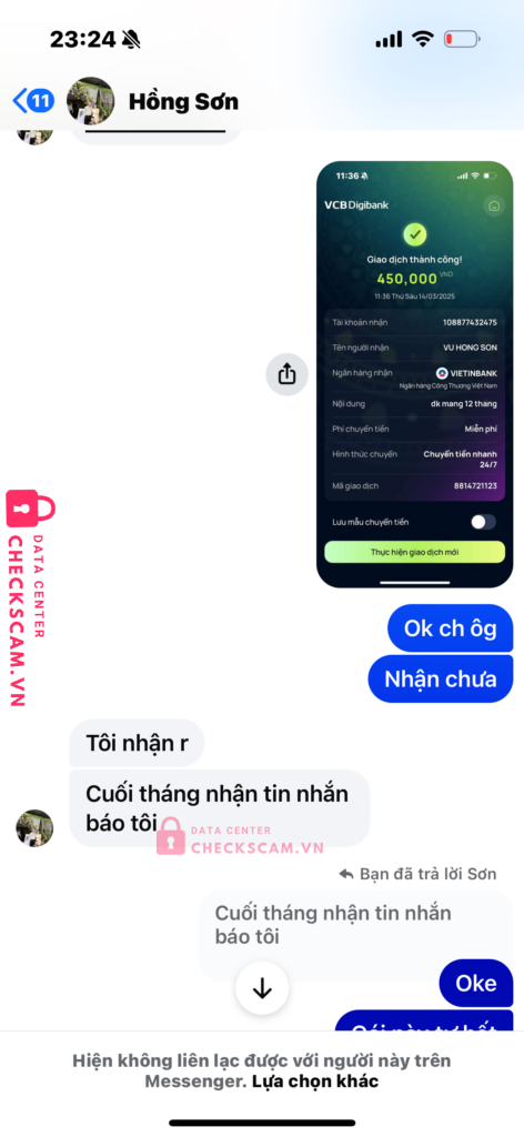 Scammer Alert: VU HONG SON Reported: May 10, 2025 Scammer Information Full Name: VU HONG SON Payment Gate: Vietinbank Payment Account: 108877432475 Category: Marketplace scams Source: Checkscam Evidence Files Report Description Buôn bán trao đổi thẻ cào paypal v.v. Bán mạng data. Scam rách có sđt 0867011350 Comments Your comment Add Comment No comments yet. Be the first to share your experience with this scammer.