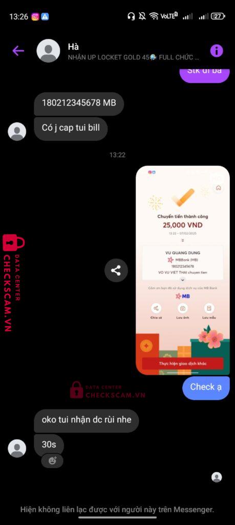 Scammer Alert: Vu Quang Dung Reported: March 7, 2025 Scammer Information Full Name: Vu Quang Dung Payment Gate: MB Bank Payment Account: 180212345678 Category: Marketplace scams Source: Checkscam Evidence Files Report Description Mua tut đục cp bị nó scam, nó còn bán acc ff nữa ae né nha Comments Your comment Add Comment No comments yet. Be the first to share your experience with this scammer.