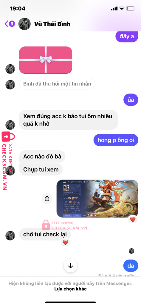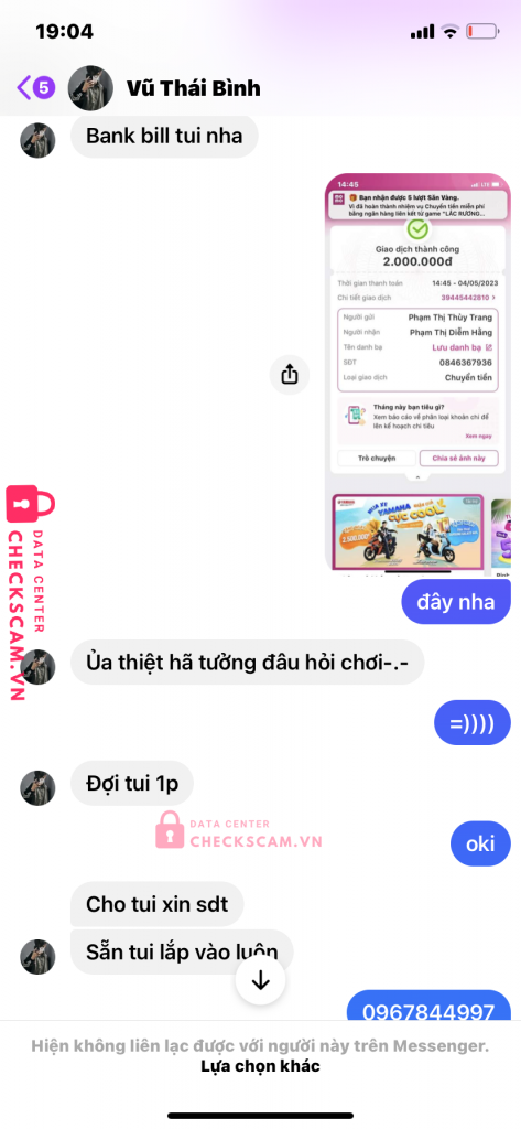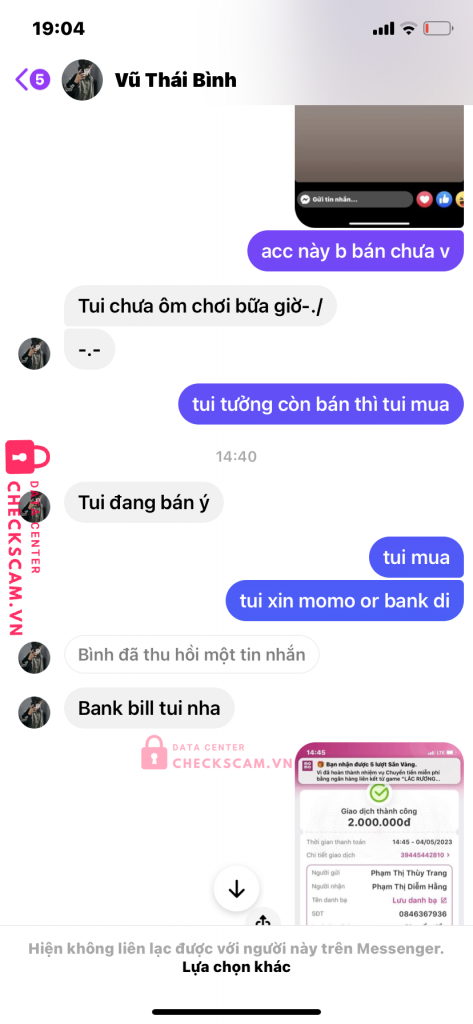 Scammer Alert: Vũ Thái Bình Reported: November 16, 2024 Scammer Information Full Name: Vũ Thái Bình Phone Number: 0846367936 Payment Gate: momo Payment Account: 0846367936 Category: Marketplace scams Source: Checkscam Evidence Files Report Description đưa không đúng acc kêu đợi rồi block mình hết luôn Comments Your comment Add Comment No comments yet. Be the first to share your experience with this scammer.
