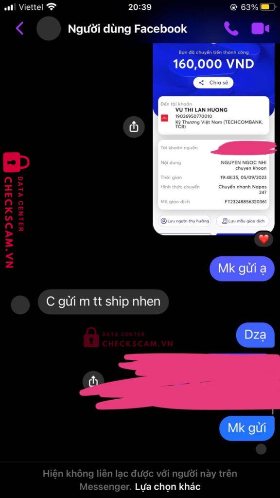 Scammer Alert: VU THI LAN HUONG Reported: November 16, 2024 Scammer Information Full Name: VU THI LAN HUONG Payment Gate: TECHCOMBANK Payment Account: 19036950770010 Category: Marketplace scams Source: Checkscam Evidence Files Report Description Lừa tiền card bo góc Comments Your comment Add Comment No comments yet. Be the first to share your experience with this scammer.