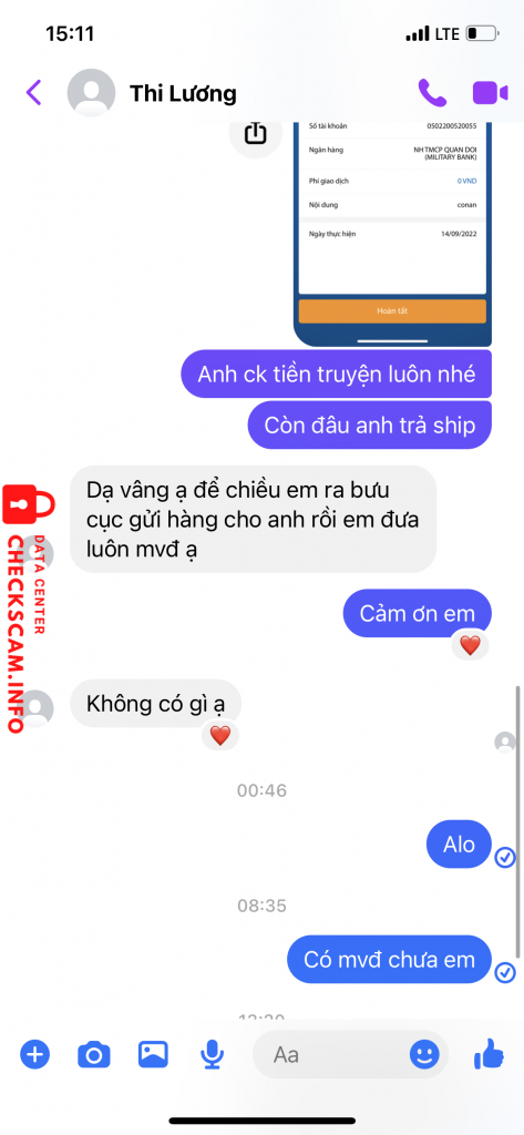 Scammer Alert: Vũ Thị Lương Reported: November 16, 2024 Scammer Information Full Name: Vũ Thị Lương Payment Gate: Mb Bank Payment Account: 0502200520055 Category: Marketplace scams Source: Checkscam Evidence Files Report Description Chuyển tiền xong thì không liên lạc được Comments Your comment Add Comment No comments yet. Be the first to share your experience with this scammer.