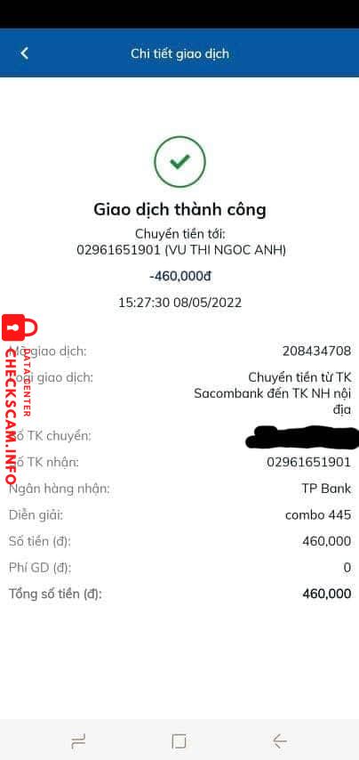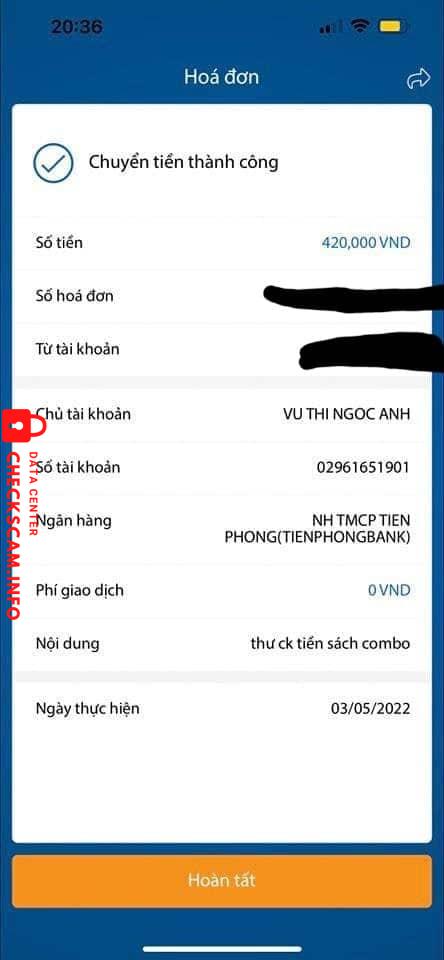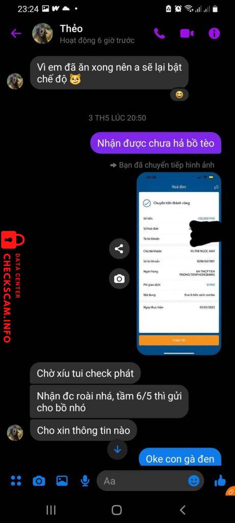 Scammer Alert: Vu Thi Ngoc Anh Reported: November 16, 2024 Scammer Information Full Name: Vu Thi Ngoc Anh Payment Gate: TP Bank Payment Account: 02961651901 Category: Marketplace scams Source: Checkscam Evidence Files Report Description Nhây hàng từ ngày này qua ngày khác rồi chặn luôn Comments Your comment Add Comment No comments yet. Be the first to share your experience with this scammer.