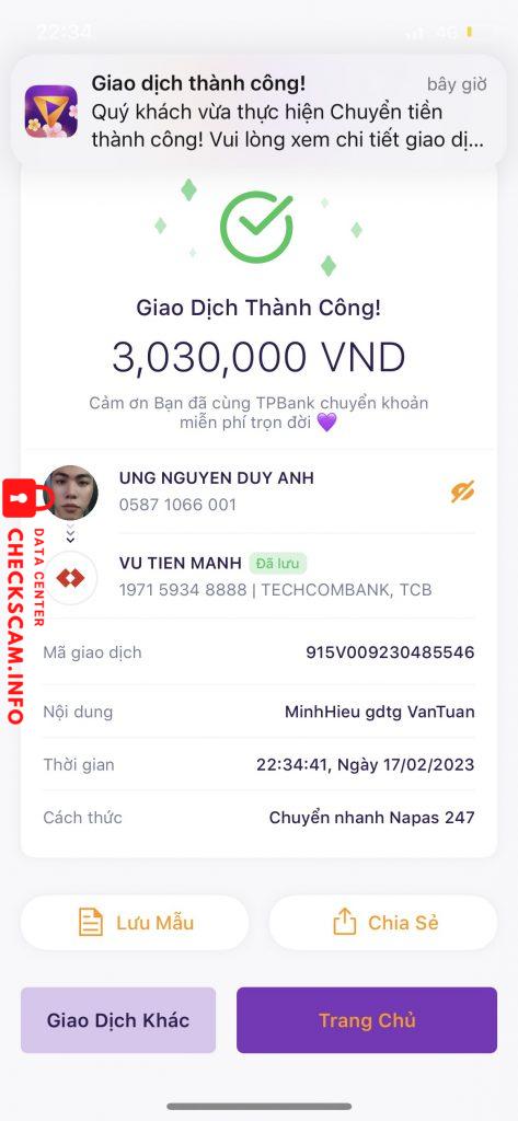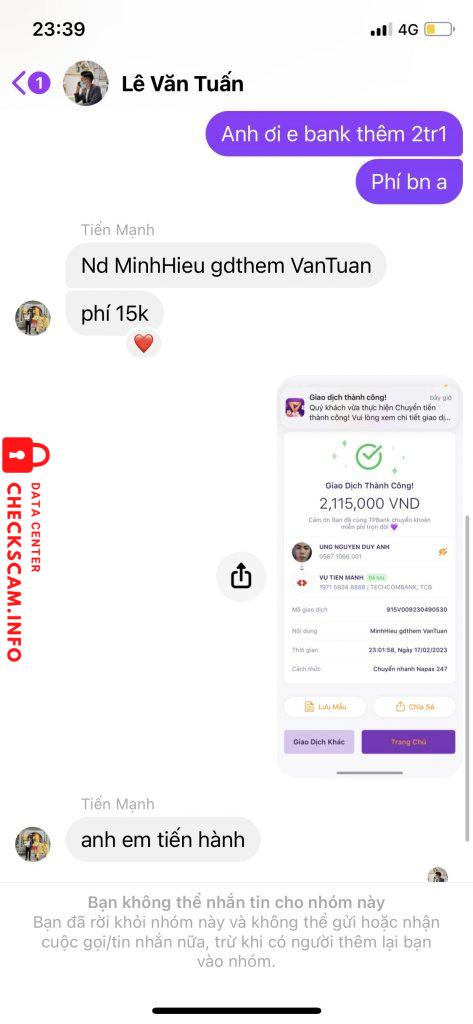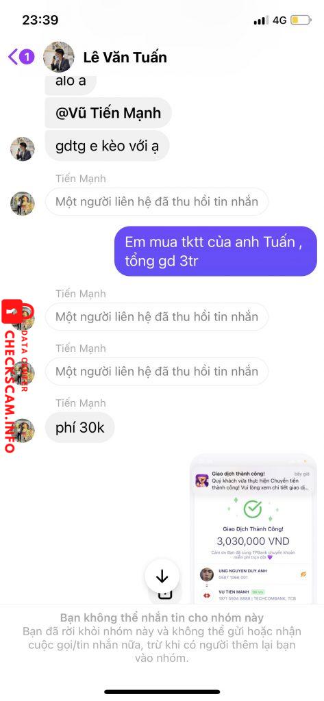 Scammer Alert: VU TIEN MANH Reported: November 16, 2024 Scammer Information Full Name: VU TIEN MANH Payment Gate: TECHCOMBANK Payment Account: 197159348888 Category: Marketplace scams Source: Checkscam Evidence Files Report Description ANH EM CẨN THẬN CON CHÓ NÀY NHA Comments Your comment Add Comment No comments yet. Be the first to share your experience with this scammer.