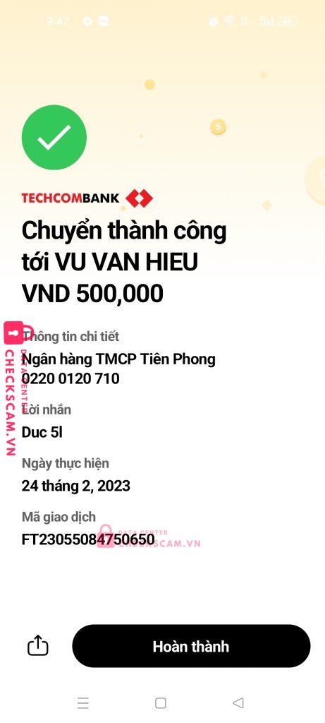 Scammer Alert: VU VAN HIEU Reported: November 16, 2024 Scammer Information Full Name: VU VAN HIEU Payment Gate: TPBANK Payment Account: 02200120710 Category: Marketplace scams Source: Checkscam Evidence Files Report Description Tài khoản này đã Scam Comments Your comment Add Comment No comments yet. Be the first to share your experience with this scammer.
