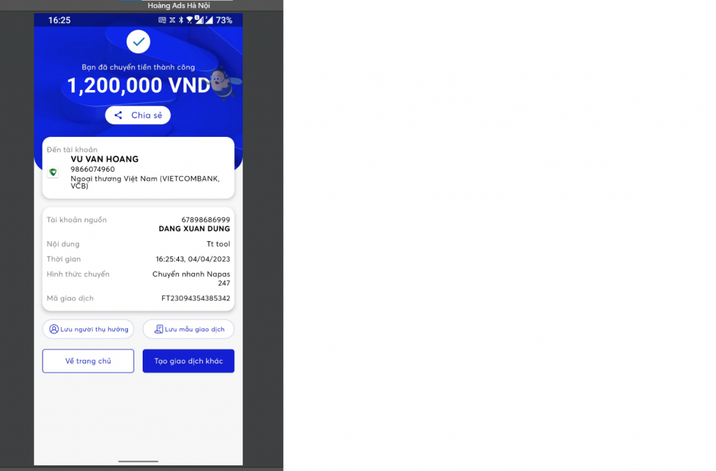Scammer Alert: VŨ VĂN HOÀNG Reported: November 16, 2024 Scammer Information Full Name: VŨ VĂN HOÀNG Payment Gate: VIET COM BANK Payment Account: 9866074960 Category: Marketplace scams Source: Checkscam Evidence Files Report Description lừa đảo bán tool facebook Comments Your comment Add Comment No comments yet. Be the first to share your experience with this scammer.