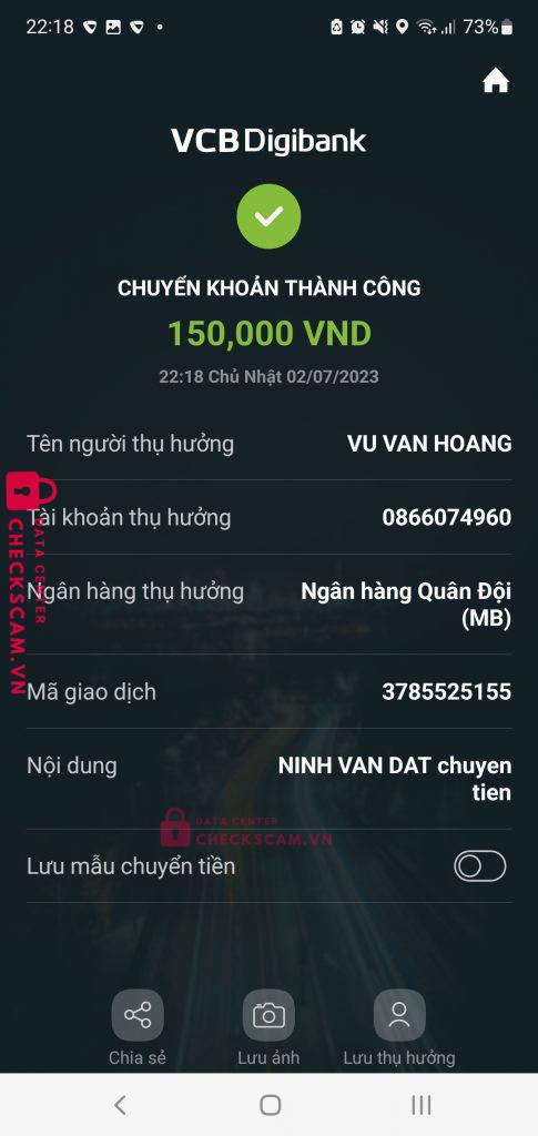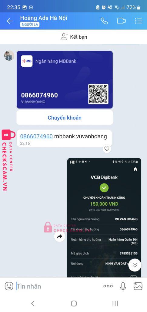 Scammer Alert: vũ văn hoàng Reported: November 16, 2024 Scammer Information Full Name: vũ văn hoàng Phone Number: 0866074960 Payment Gate: mb bank Payment Account: 0866074960 Category: Marketplace scams Source: Checkscam Evidence Files Report Description Lừa bán via spam 15k/1 via. chuyển tiền 150k xong chặn luôn fb và zalo. Comments Your comment Add Comment No comments yet. Be the first to share your experience with this scammer.