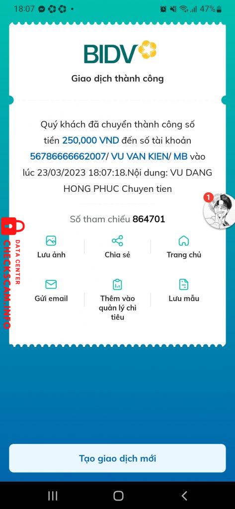 Scammer Alert: Vu Van Kien Reported: November 16, 2024 Scammer Information Full Name: Vu Van Kien Payment Gate: Mb Payment Account: 56786666662007 Category: Marketplace scams Source: Checkscam Evidence Files Report Description Scam truyện mất 250k Comments Your comment Add Comment No comments yet. Be the first to share your experience with this scammer.