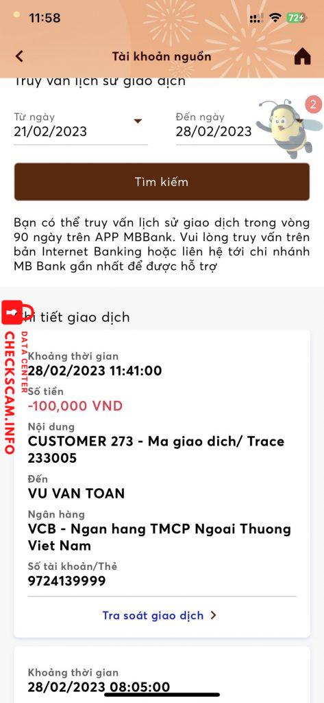 Scammer Alert: vũ văn toàn Reported: November 16, 2024 Scammer Information Full Name: vũ văn toàn Payment Gate: vcb Payment Account: 972413999 Category: Marketplace scams Source: Checkscam Evidence Files Report Description lừa đảo Comments Your comment Add Comment No comments yet. Be the first to share your experience with this scammer.