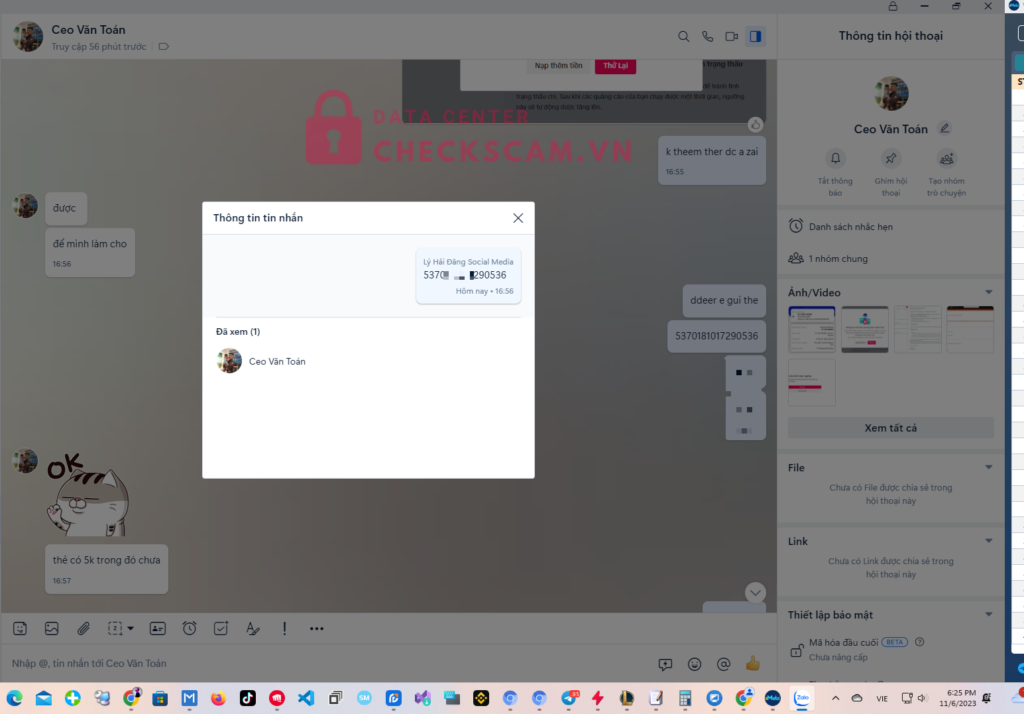 Scammer Alert: VU VAN TOÁN Reported: November 16, 2024 Scammer Information Full Name: VU VAN TOÁN Payment Gate: ShinhanBank Payment Account: 700030431396 Category: Marketplace scams Source: Checkscam Evidence Files Report Description Scam mua tk tik tok bảo gửi thẻ để thêm hộ rồi húp 2m thời gian gửi thẻ và thời gian thẻ pay như nhau Comments Your comment Add Comment No comments yet. Be the first to share your experience with this scammer.