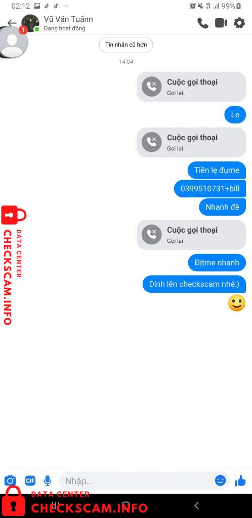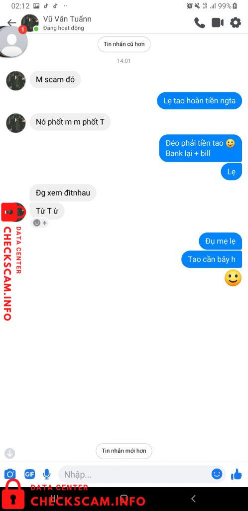 Scammer Alert: Vũ Văn Tuần Reported: November 16, 2024 Scammer Information Full Name: Vũ Văn Tuần Phone Number: 0357609257 Payment Gate: MB Bank Payment Account: 0357609257 Category: Marketplace scams Source: Checkscam Evidence Files Report Description 2007 Scam Tiền Mua Bán Comments Your comment Add Comment No comments yet. Be the first to share your experience with this scammer.