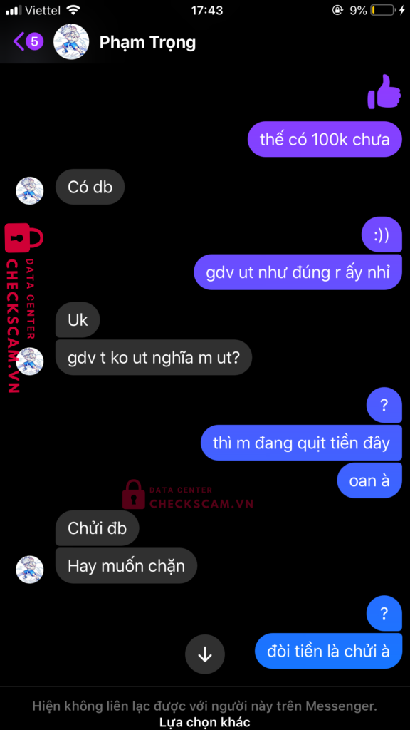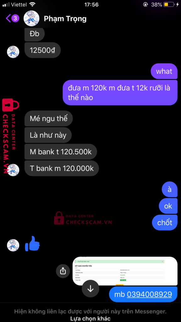 Scammer Alert: Vuong Thanh Ly Reported: November 16, 2024 Scammer Information Full Name: Vuong Thanh Ly Payment Gate: Mb bank Payment Account: 0865890122 Category: Marketplace scams Source: Checkscam Evidence Files Report Description Scam 120k Comments Your comment Add Comment No comments yet. Be the first to share your experience with this scammer.