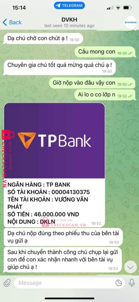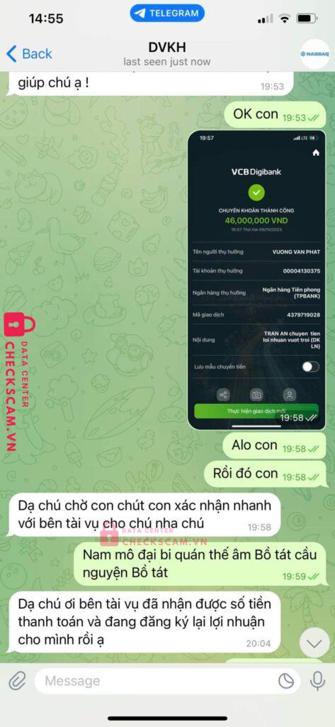 To cao ong PHAN DINH KHOI so dt:091111665 so tai khoan:229731459(ACB-NH TMCPA CHAU)la chuyen gia dua vao nhom telergam va nois chuyen tien vao tai khoan cua vuong van phat de dau tu nhung khong rut dc tien va chan lien he