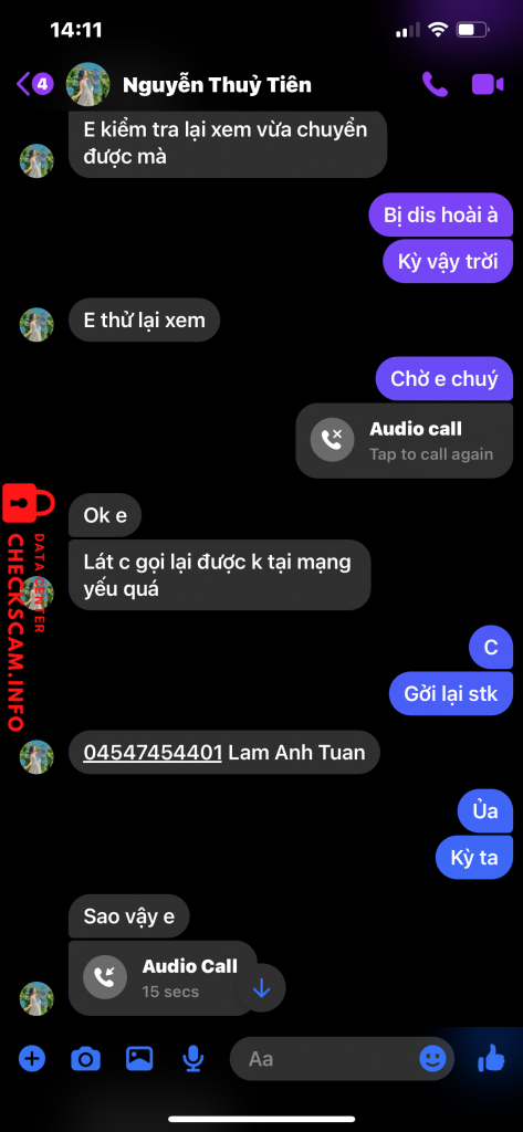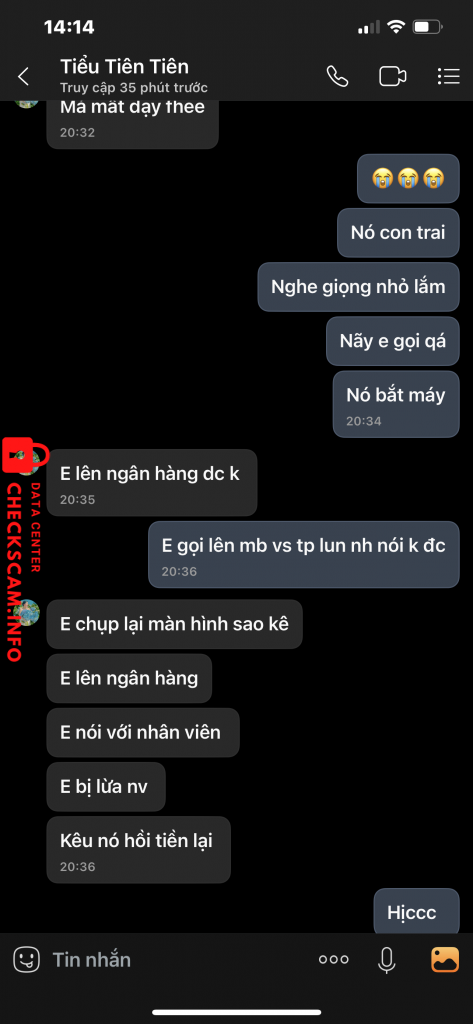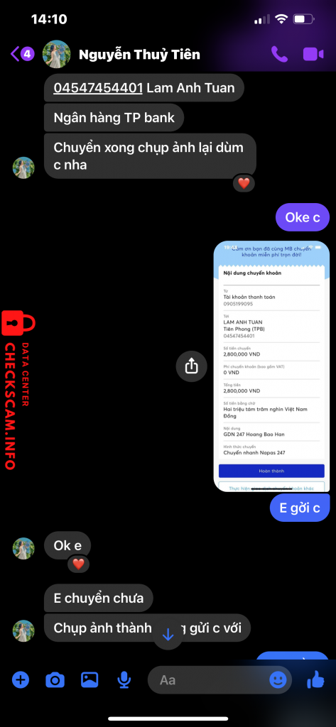 การแจ้งเตือนมิจฉาชีพ: Lam anh tuan รายงานแล้ว: November 16, 2024 ข้อมูลมิจฉาชีพ ชื่อเต็ม: Lam anh tuan ช่องทางการชำระเงิน: TPbank บัญชีการชำระเงิน: 04547454401 หมวดหมู่: การหลอกลวงในตลาดออนไลน์ แหล่งที่มา: Checkscam ไฟล์หลักฐาน คำอธิบายรายงาน Hack facebook vào lừa tiền tôi ( số tiền 2tr8 ) và lừa 1 số người khác ความคิดเห็น ความคิดเห็นของคุณ เพิ่มความคิดเห็น ยังไม่มีความคิดเห็น เป็นคนแรกที่แบ่งปันประสบการณ์กับมิจฉาชีพรายนี้