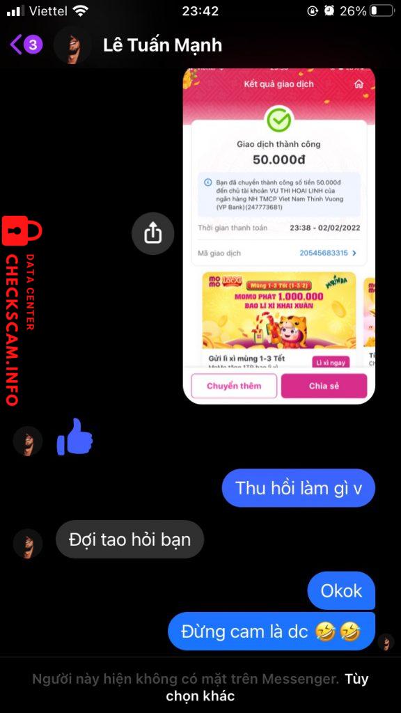 การแจ้งเตือนมิจฉาชีพ: Lê Tuấn Mạnh