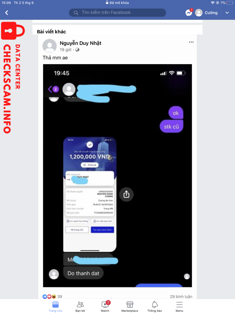 การแจ้งเตือนมิจฉาชีพ: NGUYEN DUY NHAT รายงานแล้ว: November 16, 2024 ข้อมูลมิจฉาชีพ ชื่อเต็ม: NGUYEN DUY NHAT ช่องทางการชำระเงิน: Vietcombank บัญชีการชำระเงิน: 0241004087944 หมวดหมู่: การหลอกลวงในตลาดออนไลน์ แหล่งที่มา: Checkscam ไฟล์หลักฐาน คำอธิบายรายงาน Tố cáo Nguyễn duy nhật lừa 2tr5 nó đăng kí bảo hiểm bằng mb vs sđt khác h thì ẩn hết đi ความคิดเห็น ความคิดเห็นของคุณ เพิ่มความคิดเห็น ยังไม่มีความคิดเห็น เป็นคนแรกที่แบ่งปันประสบการณ์กับมิจฉาชีพรายนี้