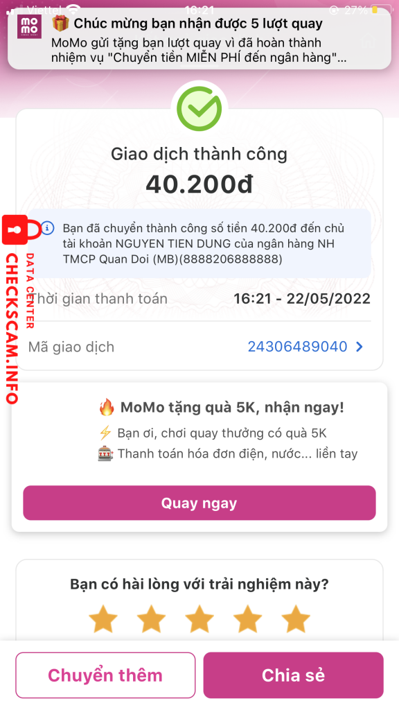 การแจ้งเตือนมิจฉาชีพ: NGUYEN TIEN DUNG รายงานแล้ว: November 16, 2024 ข้อมูลมิจฉาชีพ ชื่อเต็ม: NGUYEN TIEN DUNG ช่องทางการชำระเงิน: MB BANK บัญชีการชำระเงิน: 8888206888888 หมวดหมู่: การหลอกลวงในตลาดออนไลน์ แหล่งที่มา: Checkscam ไฟล์หลักฐาน คำอธิบายรายงาน scam fake cmnd ae né nhé ความคิดเห็น ความคิดเห็นของคุณ เพิ่มความคิดเห็น ยังไม่มีความคิดเห็น เป็นคนแรกที่แบ่งปันประสบการณ์กับมิจฉาชีพรายนี้