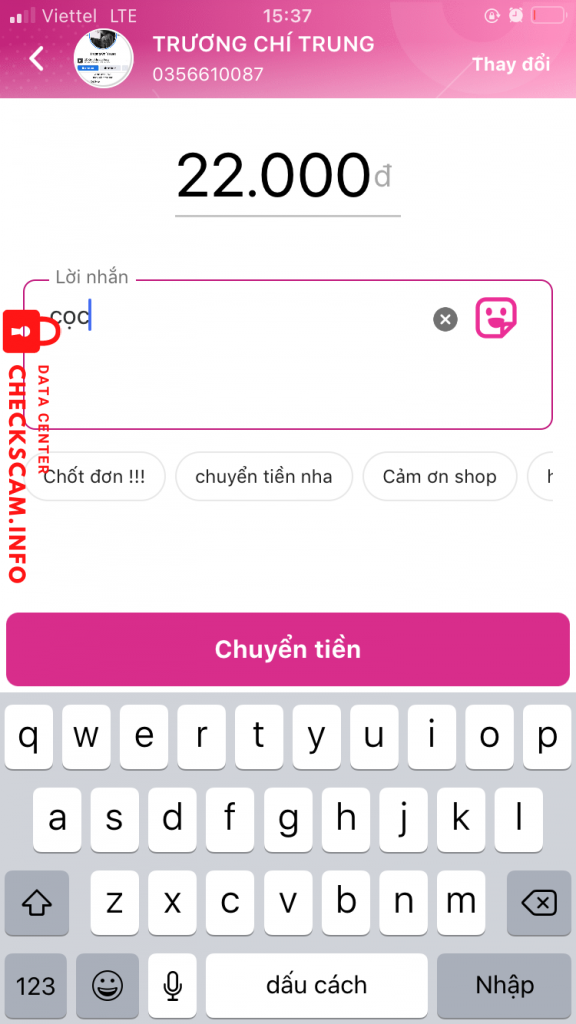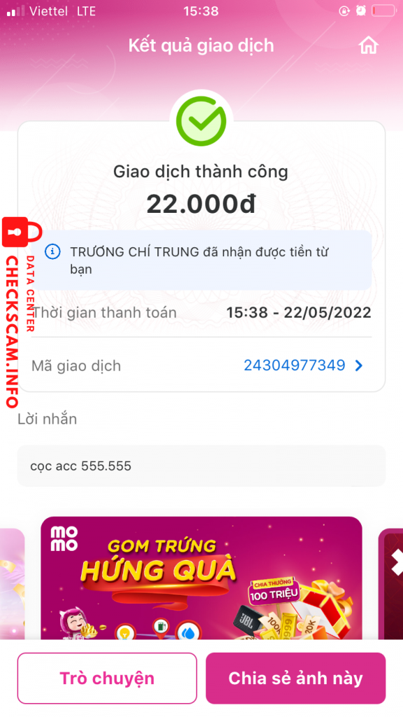 การแจ้งเตือนมิจฉาชีพ: Trương Chí Trung