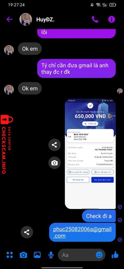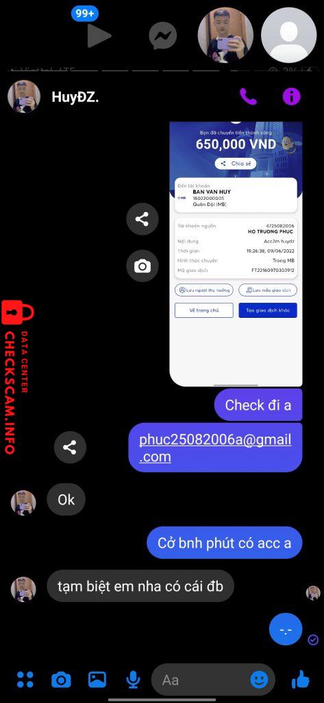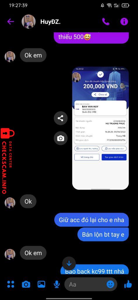 Cảnh báo kẻ lừa đảo: Ban Van Huy Đã báo cáo: November 16, 2024 Thông tin kẻ lừa đảo Họ và tên: Ban Van Huy Cổng thanh toán: Mb bank Tài khoản thanh toán: 18022000005 Danh mục: Lừa đảo mua bán Nguồn: Checkscam Tệp bằng chứng Mô tả báo cáo Lừa đảo 2 triệu tiền bán acc , mọi người cẩn thận Bình luận Bình luận của bạn Thêm bình luận Chưa có bình luận nào. Hãy là người đầu tiên chia sẻ kinh nghiệm của bạn với kẻ lừa đảo này.