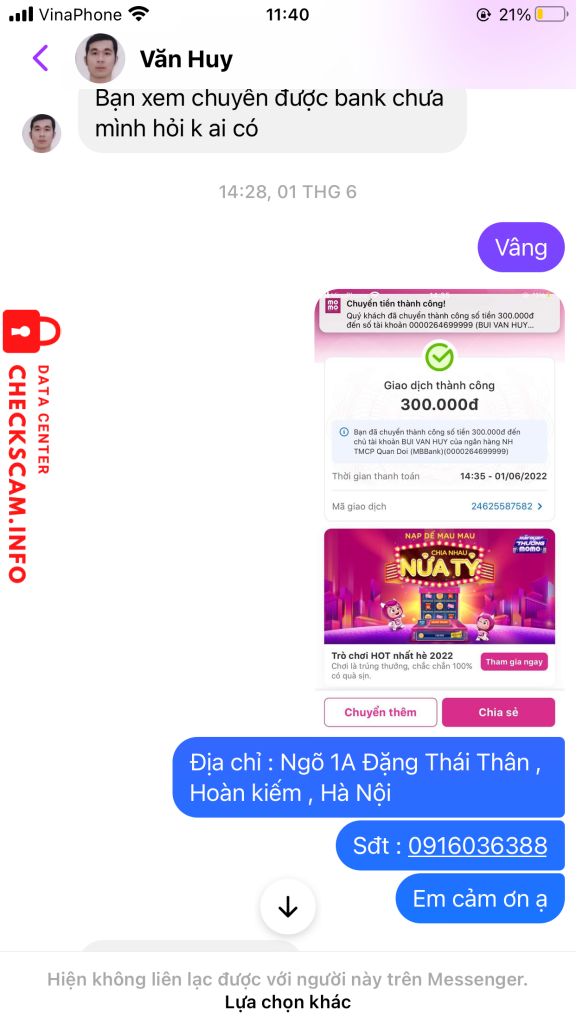 Cảnh báo kẻ lừa đảo: Bùi Văn Huy