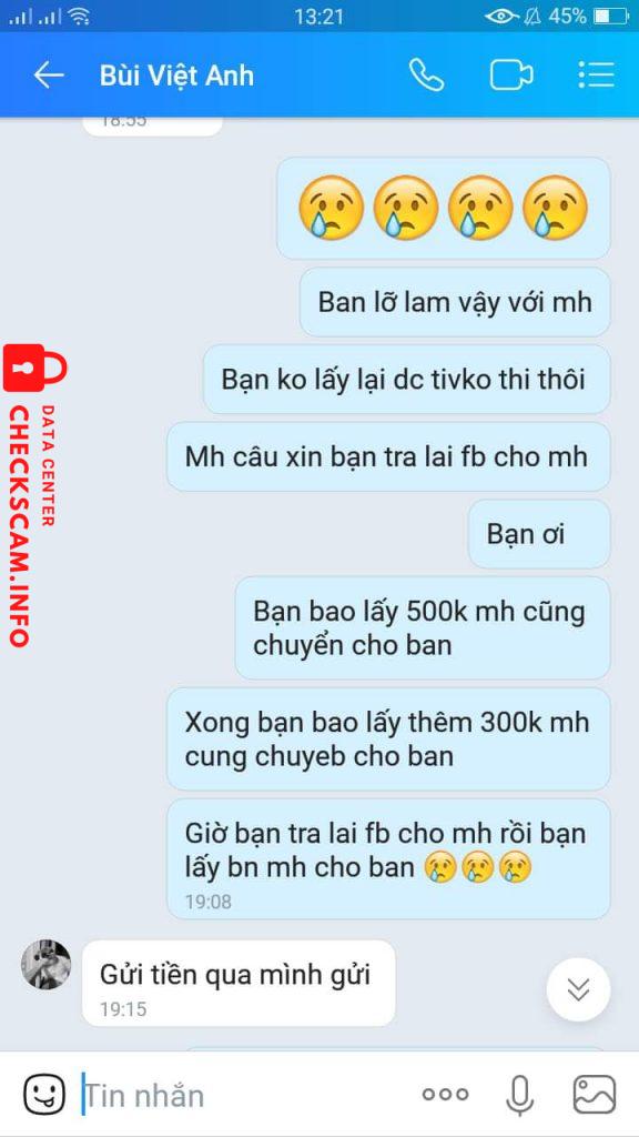 Cảnh báo kẻ lừa đảo: Bùi Việt Anh