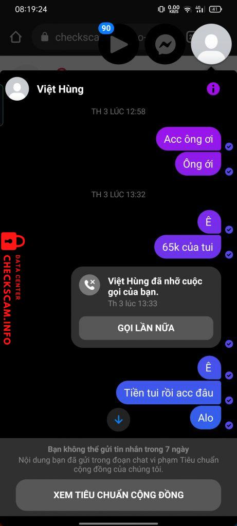 Cảnh báo kẻ lừa đảo: Cầm Việt Hùng
