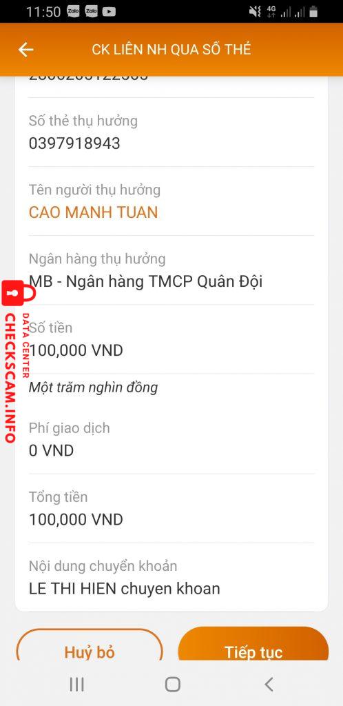 Cảnh báo kẻ lừa đảo: Cao Mạnh Tuấn