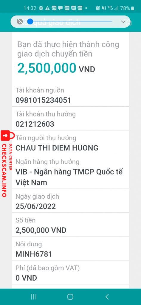 Cảnh báo kẻ lừa đảo: CHAU THI DIEM HUONG Đã báo cáo: November 16, 2024 Thông tin kẻ lừa đảo Họ và tên: CHAU THI DIEM HUONG Cổng thanh toán: VIB Tài khoản thanh toán: 021212603 Danh mục: Lừa đảo mua bán Nguồn: Checkscam Tệp bằng chứng Mô tả báo cáo Lừa đảo tiền của tôi Bình luận Bình luận của bạn Thêm bình luận Chưa có bình luận nào. Hãy là người đầu tiên chia sẻ kinh nghiệm của bạn với kẻ lừa đảo này.