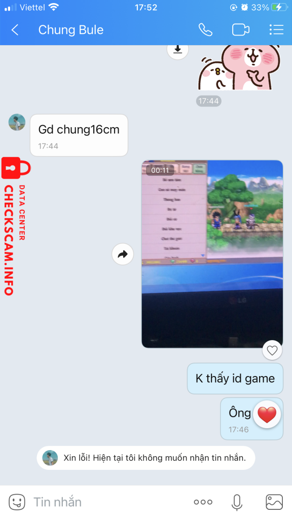 Cảnh báo kẻ lừa đảo: Chung Đã báo cáo: November 16, 2024 Thông tin kẻ lừa đảo Họ và tên: Chung Số điện thoại: 0354355825 Cổng thanh toán: Mb Tài khoản thanh toán: 0228173929999 Danh mục: Lừa đảo mua bán Nguồn: Checkscam Tệp bằng chứng Mô tả báo cáo Scam Bình luận Bình luận của bạn Thêm bình luận Chưa có bình luận nào. Hãy là người đầu tiên chia sẻ kinh nghiệm của bạn với kẻ lừa đảo này.