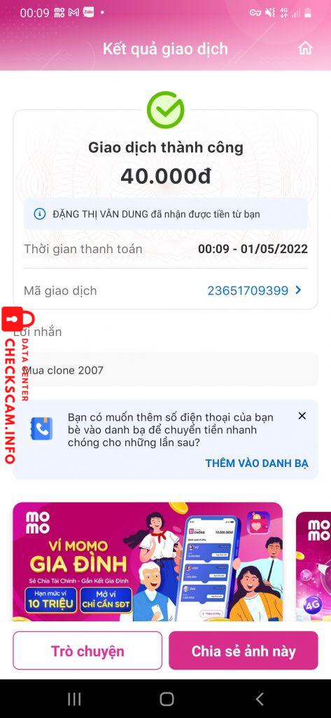 Cảnh báo kẻ lừa đảo: ĐẶNG THỊ VÂN DUNG