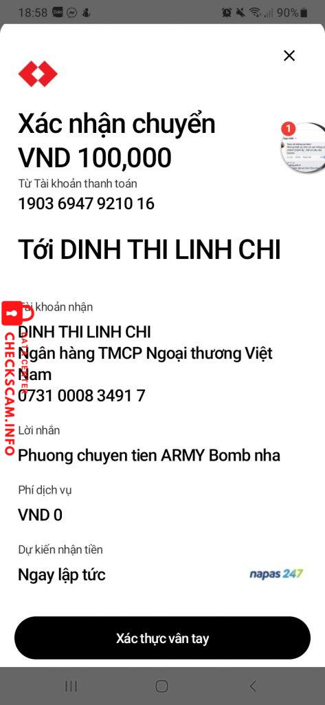Cảnh báo kẻ lừa đảo: DINH THI LINH CHI Đã báo cáo: November 16, 2024 Thông tin kẻ lừa đảo Họ và tên: DINH THI LINH CHI Cổng thanh toán: Vietcombank Tài khoản thanh toán: 0731000834917 Danh mục: Lừa đảo mua bán Nguồn: Checkscam Tệp bằng chứng Mô tả báo cáo Tài khoản và info scammer đã có trên ảnh, mọi người né liền nhé vì con này không xài acc cá nhân mà lập blog đi lừa đảo đấy ạ Bình luận Bình luận của bạn Thêm bình luận Chưa có bình luận nào. Hãy là người đầu tiên chia sẻ kinh nghiệm của bạn với kẻ lừa đảo này.