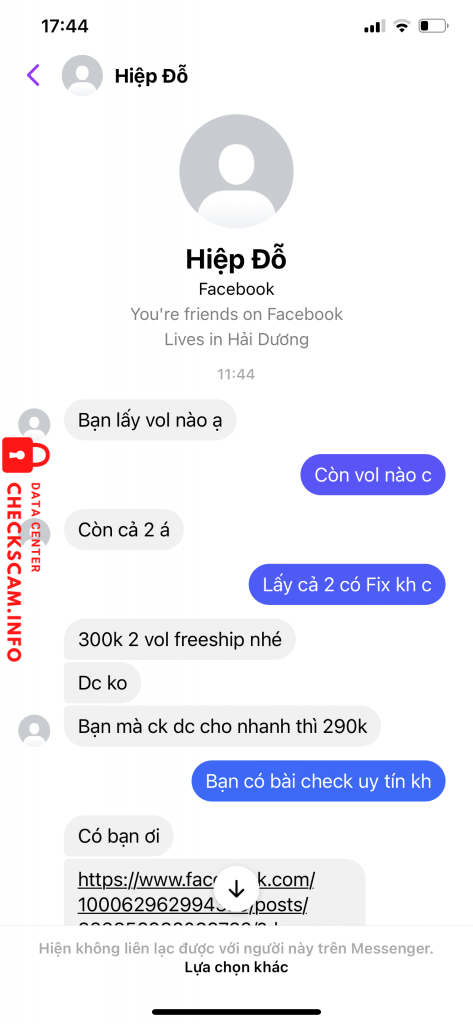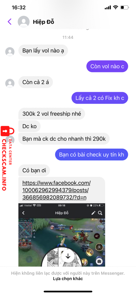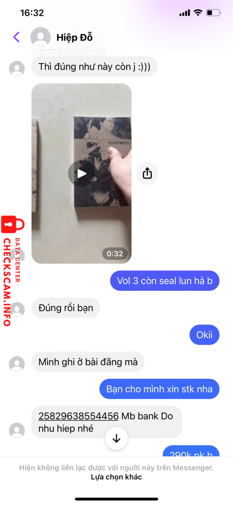 Cảnh báo kẻ lừa đảo: Do Nhu Hiep Đã báo cáo: November 16, 2024 Thông tin kẻ lừa đảo Họ và tên: Do Nhu Hiep Cổng thanh toán: Mb bank Tài khoản thanh toán: 25829638554456 Danh mục: Lừa đảo mua bán Nguồn: Checkscam Tệp bằng chứng Mô tả báo cáo Lừa đảo 290k Bình luận Bình luận của bạn Thêm bình luận Chưa có bình luận nào. Hãy là người đầu tiên chia sẻ kinh nghiệm của bạn với kẻ lừa đảo này.