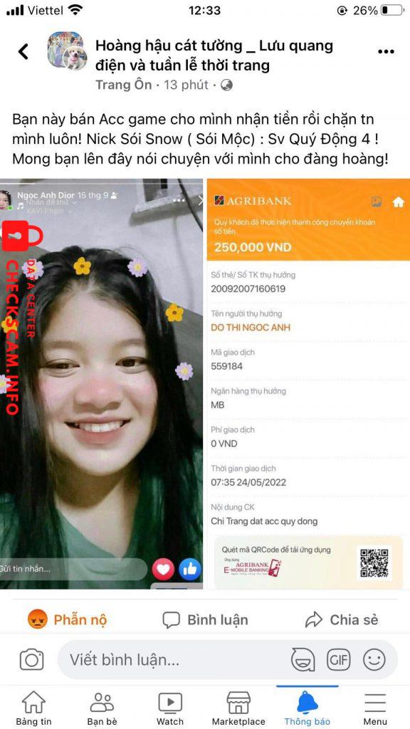 Cảnh báo kẻ lừa đảo: DO THI NGOC ANH