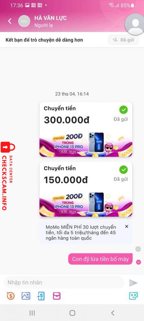 Cảnh báo kẻ lừa đảo: Đức Lực Đã báo cáo: November 16, 2024 Thông tin kẻ lừa đảo Họ và tên: Đức Lực Số điện thoại: 0375071624 Cổng thanh toán: Momo Tài khoản thanh toán: 0375071624 Danh mục: Lừa đảo mua bán Nguồn: Checkscam Tệp bằng chứng Mô tả báo cáo Bị Lừa 450k Mua acc bị lừa Bình luận Bình luận của bạn Thêm bình luận Chưa có bình luận nào. Hãy là người đầu tiên chia sẻ kinh nghiệm của bạn với kẻ lừa đảo này.