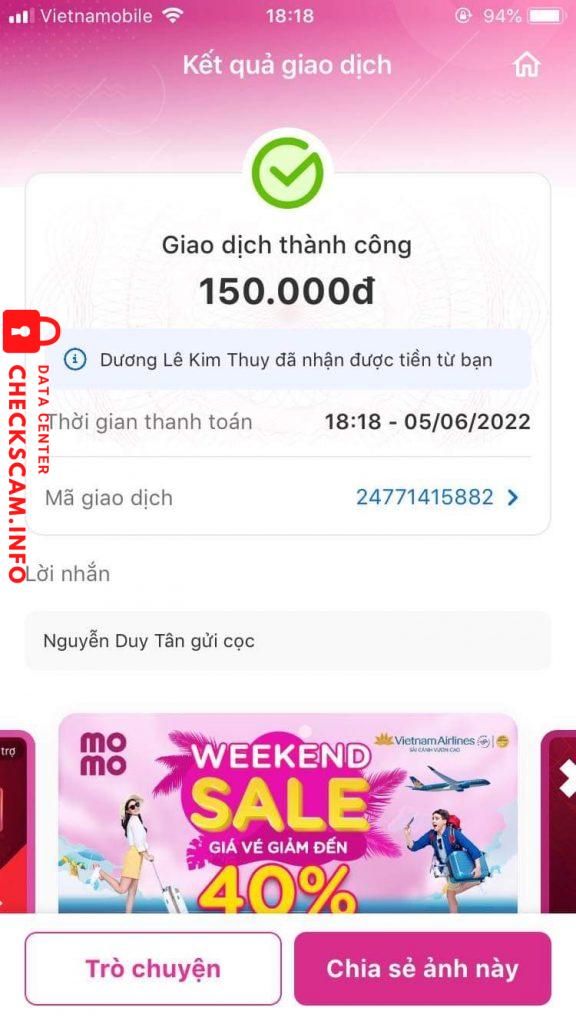 Cảnh báo kẻ lừa đảo: Duong Le kim thuy