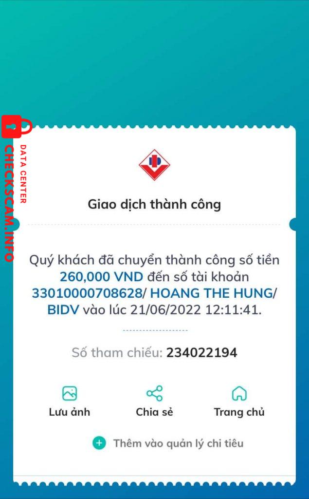Cảnh báo kẻ lừa đảo: HOANG THE HUNG Đã báo cáo: November 16, 2024 Thông tin kẻ lừa đảo Họ và tên: HOANG THE HUNG Cổng thanh toán: BIDV Tài khoản thanh toán: 33010000708628 Danh mục: Lừa đảo mua bán Nguồn: Checkscam Tệp bằng chứng Mô tả báo cáo Tôi mua 5 thẻ visa của thằng rr này. Tôi muốn tố nó lên đây để mn biết mà tránh nó ra Bình luận Bình luận của bạn Thêm bình luận Chưa có bình luận nào. Hãy là người đầu tiên chia sẻ kinh nghiệm của bạn với kẻ lừa đảo này.