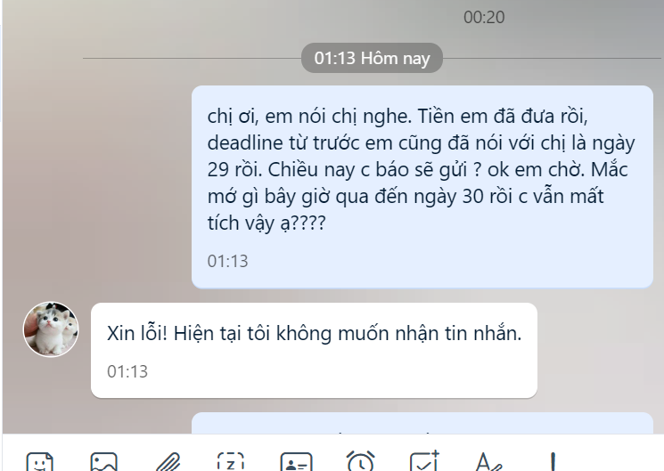 Cảnh báo kẻ lừa đảo: Hoang Thi Duyen Đã báo cáo: November 16, 2024 Thông tin kẻ lừa đảo Họ và tên: Hoang Thi Duyen Cổng thanh toán: MB Bank Tài khoản thanh toán: 7374567890123 Danh mục: Lừa đảo mua bán Nguồn: Checkscam Tệp bằng chứng Mô tả báo cáo Cho thuê làm bài, tuy nhiên đến deadline thì chặn từ facebook đến zalo =)))))) Bình luận Bình luận của bạn Thêm bình luận Chưa có bình luận nào. Hãy là người đầu tiên chia sẻ kinh nghiệm của bạn với kẻ lừa đảo này.