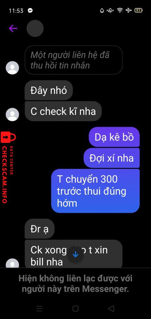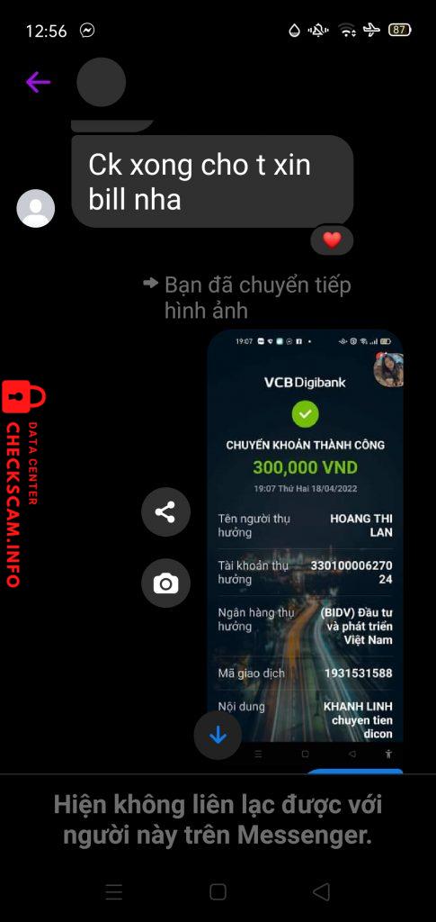 Cảnh báo kẻ lừa đảo: Hoang Thi Lan Đã báo cáo: November 16, 2024 Thông tin kẻ lừa đảo Họ và tên: Hoang Thi Lan Cổng thanh toán: BIDV Tài khoản thanh toán: 33010000627024 Danh mục: Lừa đảo mua bán Nguồn: Checkscam Tệp bằng chứng Mô tả báo cáo Scammer Bình luận Bình luận của bạn Thêm bình luận Chưa có bình luận nào. Hãy là người đầu tiên chia sẻ kinh nghiệm của bạn với kẻ lừa đảo này.