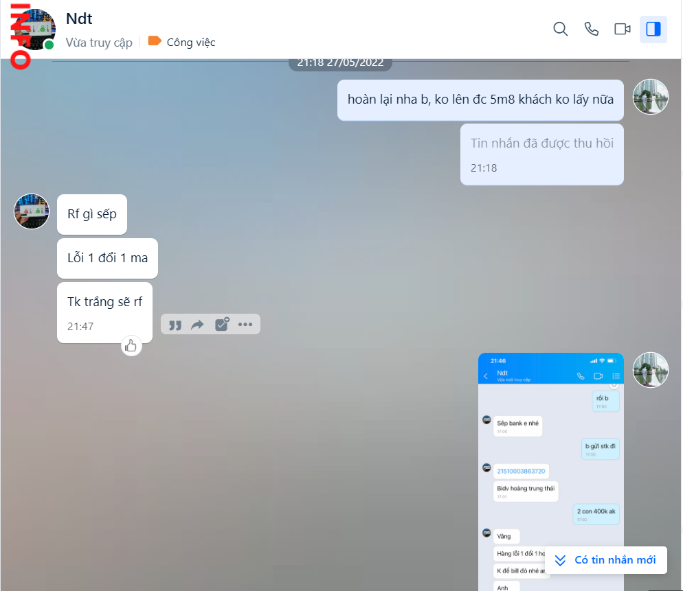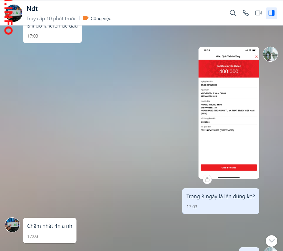 mua tk 1m1 bao lên 5m8, lúc đầu nói không lên thì rf hoặc đổi, sau ko lên báo rf thì nói chỉ đổi xong lươn lẹo mãi không đổi, nó với stk 05828239601 NGUYEN DUC THINH NH TMCP Tiên Phong – TPBANK là cùng 1 người