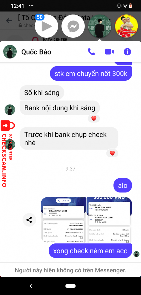 Cảnh báo kẻ lừa đảo: Hoang Văn Linh Đã báo cáo: November 16, 2024 Thông tin kẻ lừa đảo Họ và tên: Hoang Văn Linh Cổng thanh toán: ACB Tài khoản thanh toán: 25332627 Danh mục: Lừa đảo mua bán Nguồn: Checkscam Tệp bằng chứng Mô tả báo cáo Sv web giả , ae để ý nó tạo web checkscam giả để lừa đảo Bình luận Bình luận của bạn Thêm bình luận Chưa có bình luận nào. Hãy là người đầu tiên chia sẻ kinh nghiệm của bạn với kẻ lừa đảo này.