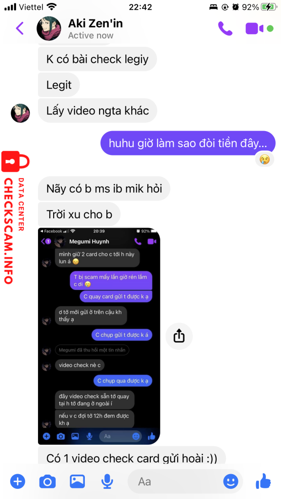 Cảnh báo kẻ lừa đảo: HUYNH LE TIEN DAT Đã báo cáo: November 16, 2024 Thông tin kẻ lừa đảo Họ và tên: HUYNH LE TIEN DAT Cổng thanh toán: MBBANK Tài khoản thanh toán: 016613579 Danh mục: Lừa đảo mua bán Nguồn: Checkscam Tệp bằng chứng Mô tả báo cáo Lừa đảo tiền Bình luận Bình luận của bạn Thêm bình luận Chưa có bình luận nào. Hãy là người đầu tiên chia sẻ kinh nghiệm của bạn với kẻ lừa đảo này.