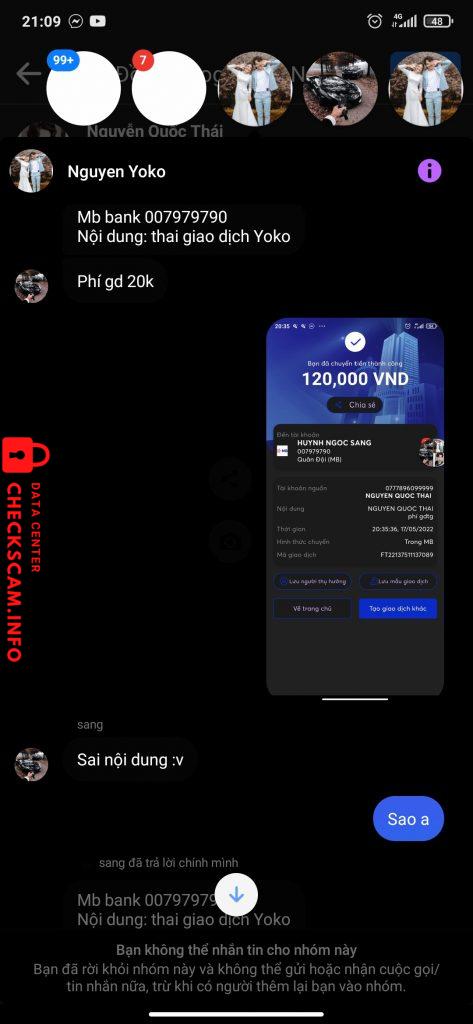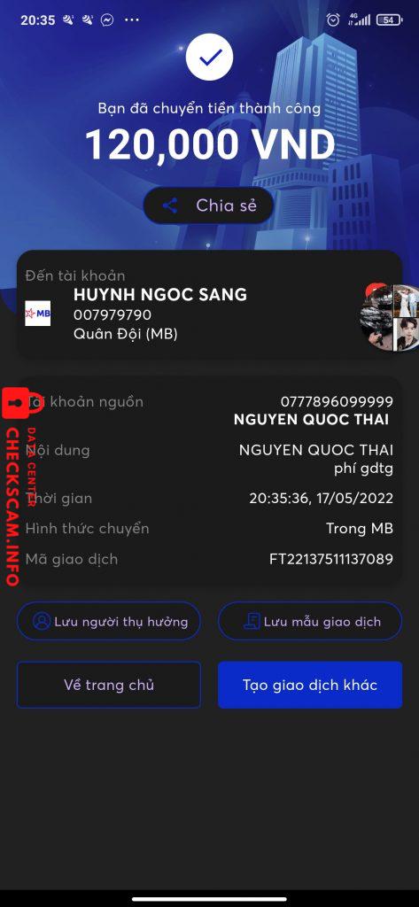 Cảnh báo kẻ lừa đảo: HUYNH NGOC SANG