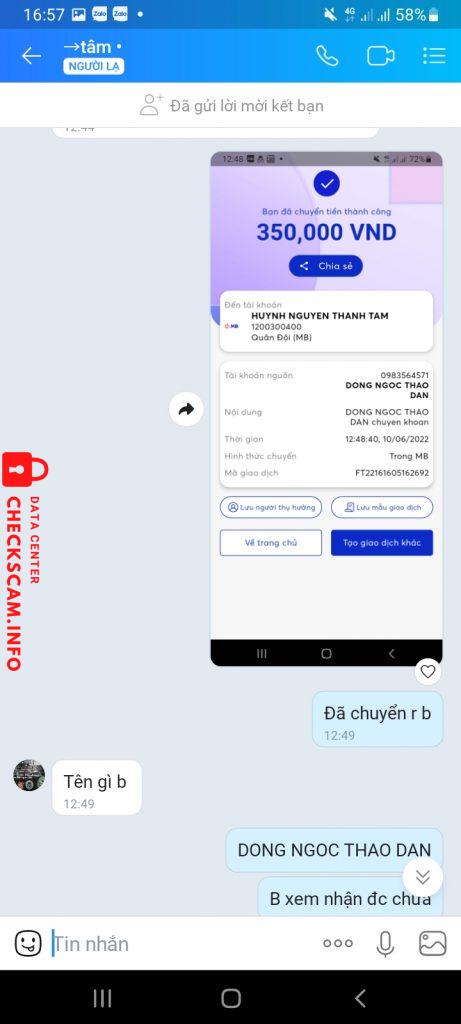 Cảnh báo kẻ lừa đảo: HUYNH NGUYEN THANH TAM