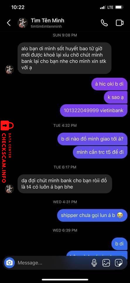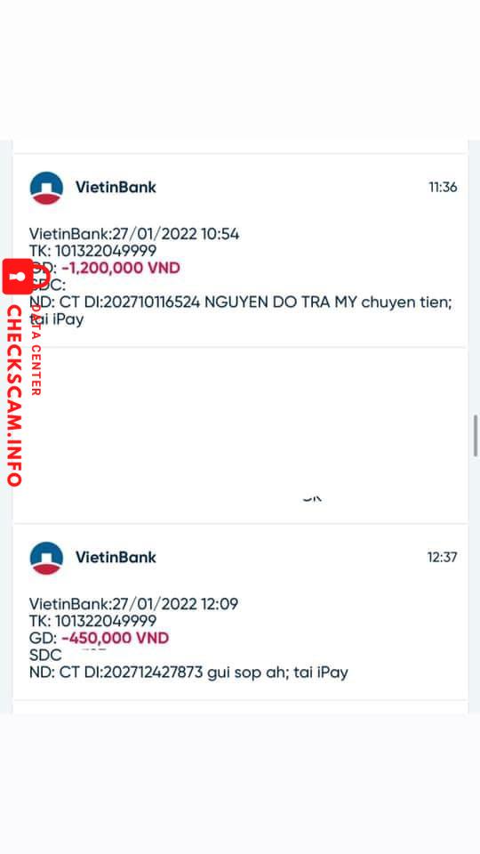 Cảnh báo kẻ lừa đảo: Huynh Quoc Bao Đã báo cáo: November 16, 2024 Thông tin kẻ lừa đảo Họ và tên: Huynh Quoc Bao Cổng thanh toán: MB Bank Tài khoản thanh toán: 3456686859999 Danh mục: Lừa đảo mua bán Nguồn: Checkscam Tệp bằng chứng Mô tả báo cáo lừa đảo, scam tiền qua mạng Bình luận Bình luận của bạn Thêm bình luận Chưa có bình luận nào. Hãy là người đầu tiên chia sẻ kinh nghiệm của bạn với kẻ lừa đảo này.