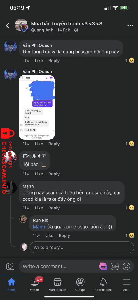 Cảnh báo kẻ lừa đảo: Huynh Thi Can Đã báo cáo: November 16, 2024 Thông tin kẻ lừa đảo Họ và tên: Huynh Thi Can Cổng thanh toán: Vietcombank Tài khoản thanh toán: 0961000041613 Danh mục: Lừa đảo mua bán Nguồn: Checkscam Tệp bằng chứng Mô tả báo cáo Lừa đảo, sd CCCD của ng khác Bình luận Bình luận của bạn Thêm bình luận Chưa có bình luận nào. Hãy là người đầu tiên chia sẻ kinh nghiệm của bạn với kẻ lừa đảo này.