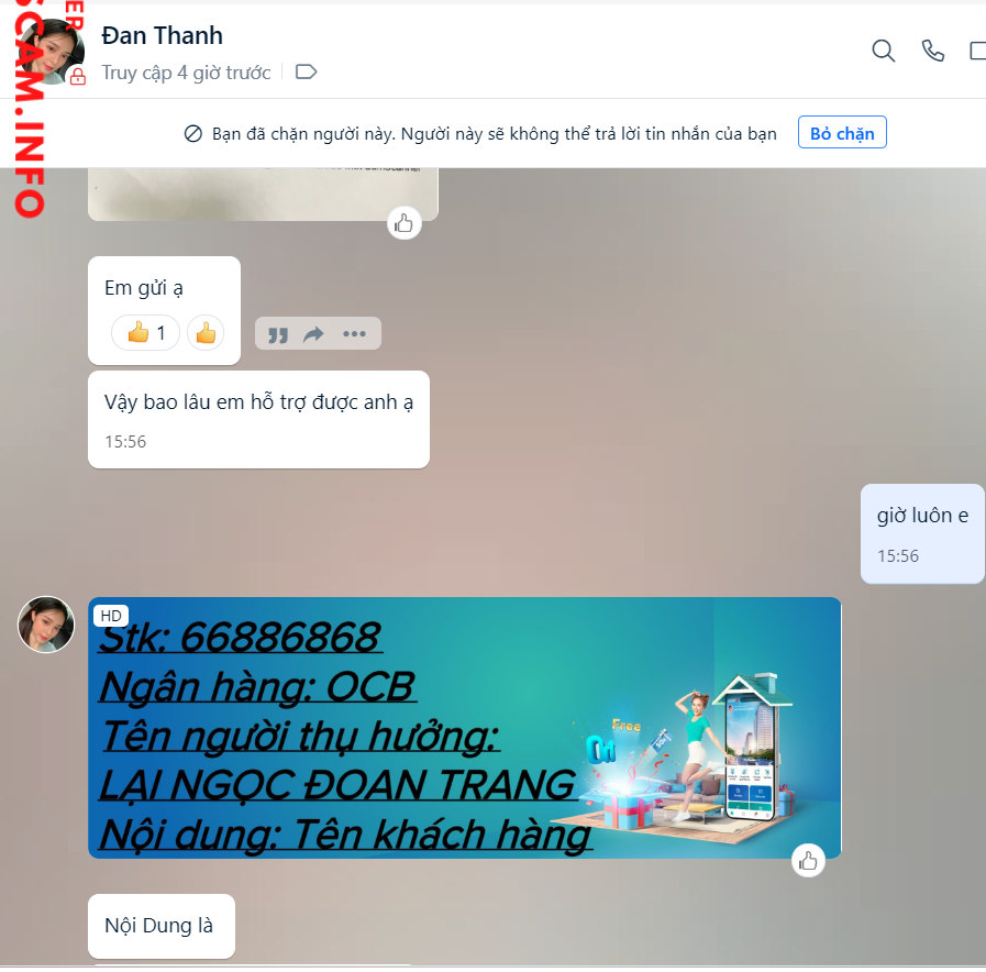 Cảnh báo kẻ lừa đảo: Lại Ngọc Đoan Trang