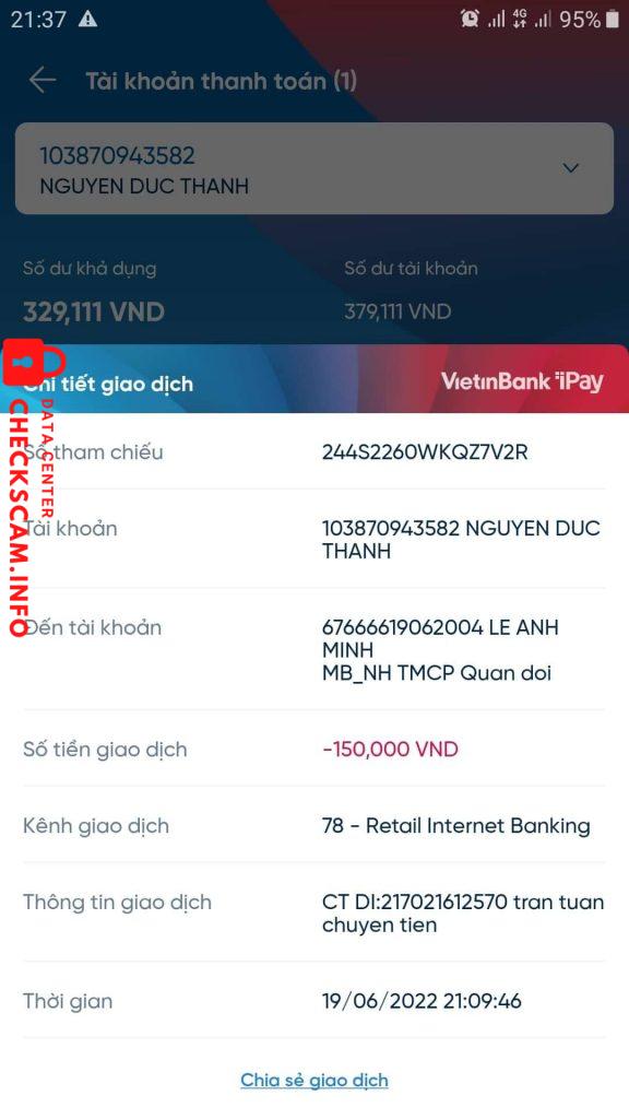 Cảnh báo kẻ lừa đảo: Lê anh minh Đã báo cáo: November 16, 2024 Thông tin kẻ lừa đảo Họ và tên: Lê anh minh Cổng thanh toán: Mb bank Tài khoản thanh toán: 67666619062004 Danh mục: Lừa đảo mua bán Nguồn: Checkscam Tệp bằng chứng Mô tả báo cáo Chủ tài khoản này mua bán bank tiền xong thì không giao hàng và đã chặn thông tin liên lạc , mong nhà chức trách có thẩm quyền xem xét Bình luận Bình luận của bạn Thêm bình luận Chưa có bình luận nào. Hãy là người đầu tiên chia sẻ kinh nghiệm của bạn với kẻ lừa đảo này.