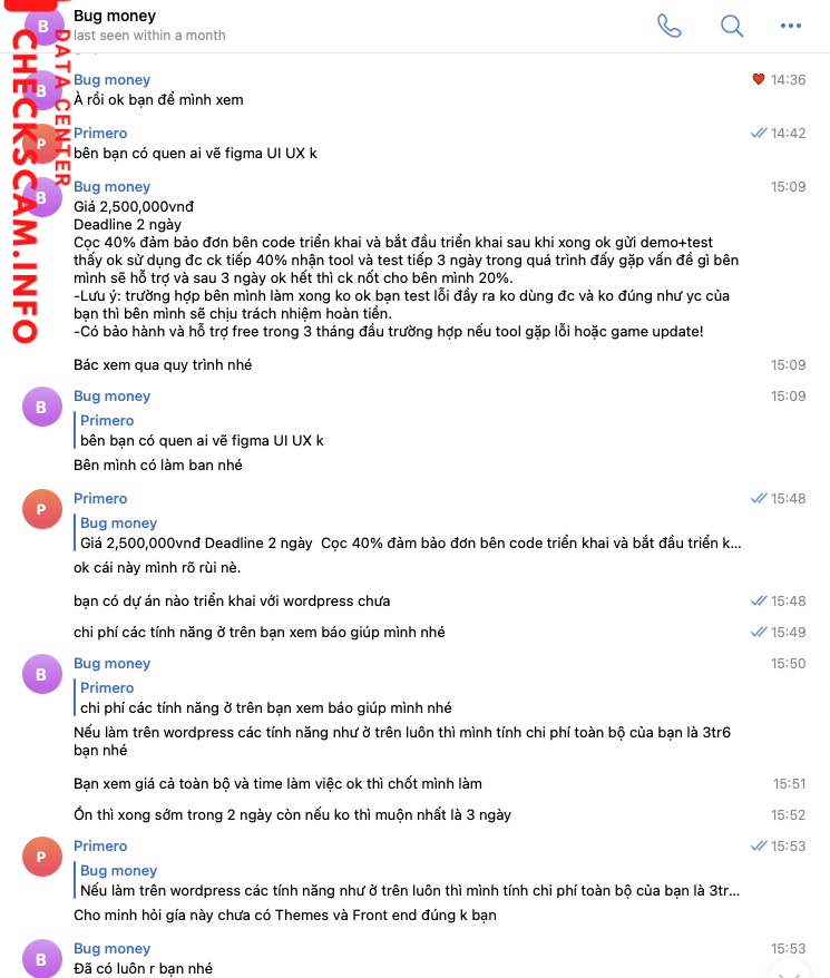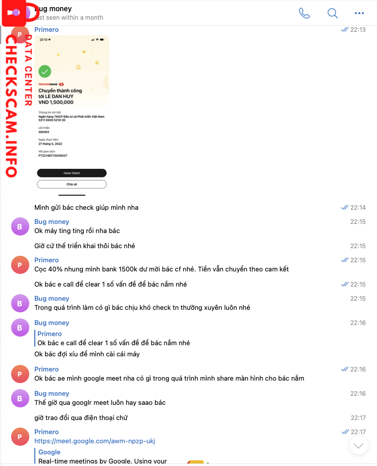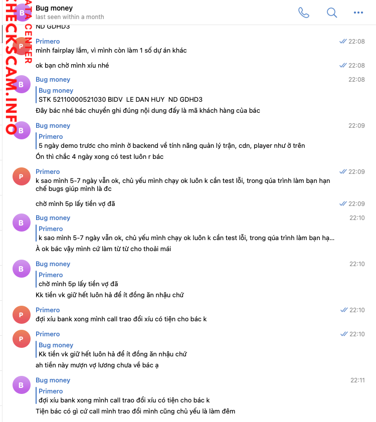 Nhận cọc 1,5tr làm web, yêu cầu chuyển thêm nhưng chưa chuyển đã lặn do mình yêu cầu demo. chắc không làm được nên im luôn.